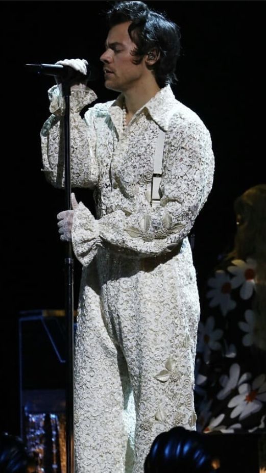Harry Styles, a popular musician (Fig. 6), uses a dandy era aesthetic to build a brand for himself that is current while raises relevant questions about gender. The use of white lace, a typically feminine material, and specific styling choices such as the androgynous haircut, dainty lace gloves, puff sleeves, high waisted trousers, work to create the personae of femininity albeit on a body that self-identifies as a man. Styles can separate his gender identity from his gender expression and many heterosexual receivers allow this. Gender non-conforming allows for a bridge to be built via explanation from the ‘other’ to the heterosexual receiver, providing the heterosexual receiver is open to information that is not only visual, allowing a space for the ‘other’ to denounce ‘queer’ as individual expression, separate from homosexuality. The concept of a feminine man is becoming more common place within today’s society and as such the het receiver ‘allows’ for the sender to justify their expression, filling in blank information slots regarding intent in relation to sexuality. We see this with Styles through social media and interviews. The het receiver enters the social exchange apprehensive and inquisitive. This gender expression exposes the sender, queer or otherwise, to clumsy questions produced from a culture with little respect for the queer identity, that is masked behind a ‘simulated misunderstanding’, caused by a refusal to challenge power structures, which in turn allows heterosexual receivers to remain complacent in ignorance, furthermore containing and confining queer bodies to the norm, thus nullifying subversive intent. This social contract does not have to be sanctioned by either party. The sender may refuse to acknowledge questions produced by their gender expression, keeping gender identity and sexuality secret from the receiver. Alternatively, the receiver can choose to discredit or ignore the response the sender offers up, and as such produce a new produced truth. Furthermore, this could just become an endless cycle of debate. Gender Queer is a value in which there is no ability to negate expression as experimentation, instead is a value of authentic affiliation to homosexuality and queer culture (Sichler 2010:46). To illustrate, in contrast to Styles, see YUNGBLUD (Fig. 7), an openly queer musician from alternative sub-culture who expresses as gender queer in this image via the use of feminine gendered props such as red lipstick and eyeshadow, fishnet gloves and uni-sex briefs, paired with a fitted black latex blouse shirt.
